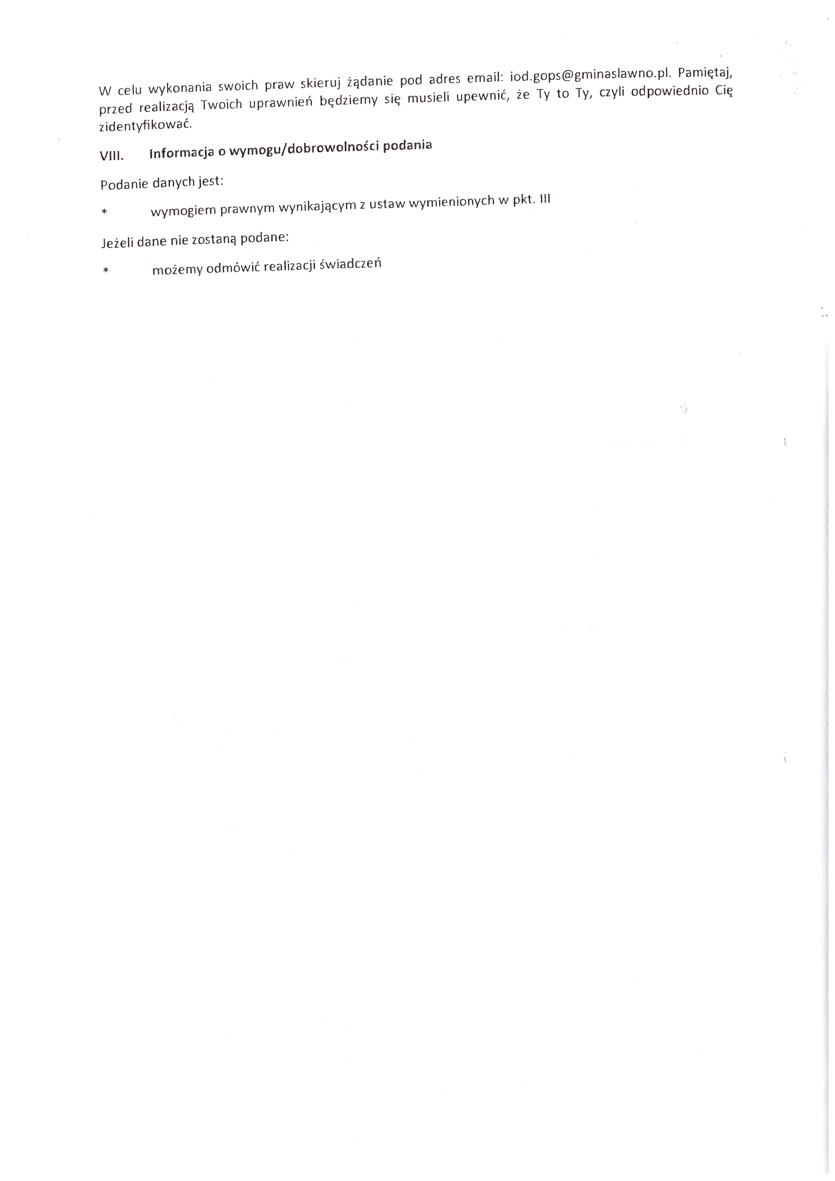 Prosimy pamiętać, że w toku postępowania administracyjnego Gminny Ośrodek Pomocy Społeczne w Sławnie może wymagać dostarczenia także innych dokumentów, jeżeli jest to niezbędne do rozpatrzenia sprawy.